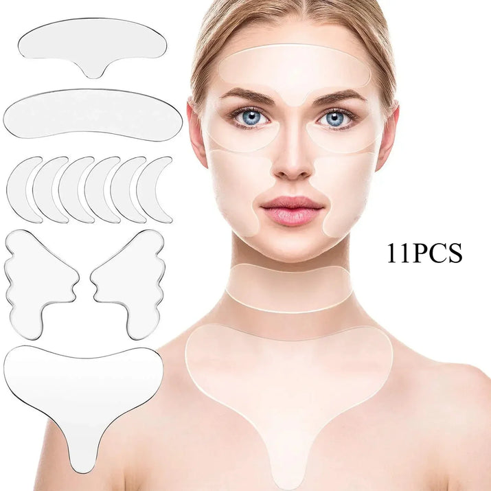 Rediscover youthful skin with our reusable silicone patches designed to reduce wrinkles and fine lines on the face, forehead, neck, and around the eyes, making skincare effortless and effective.